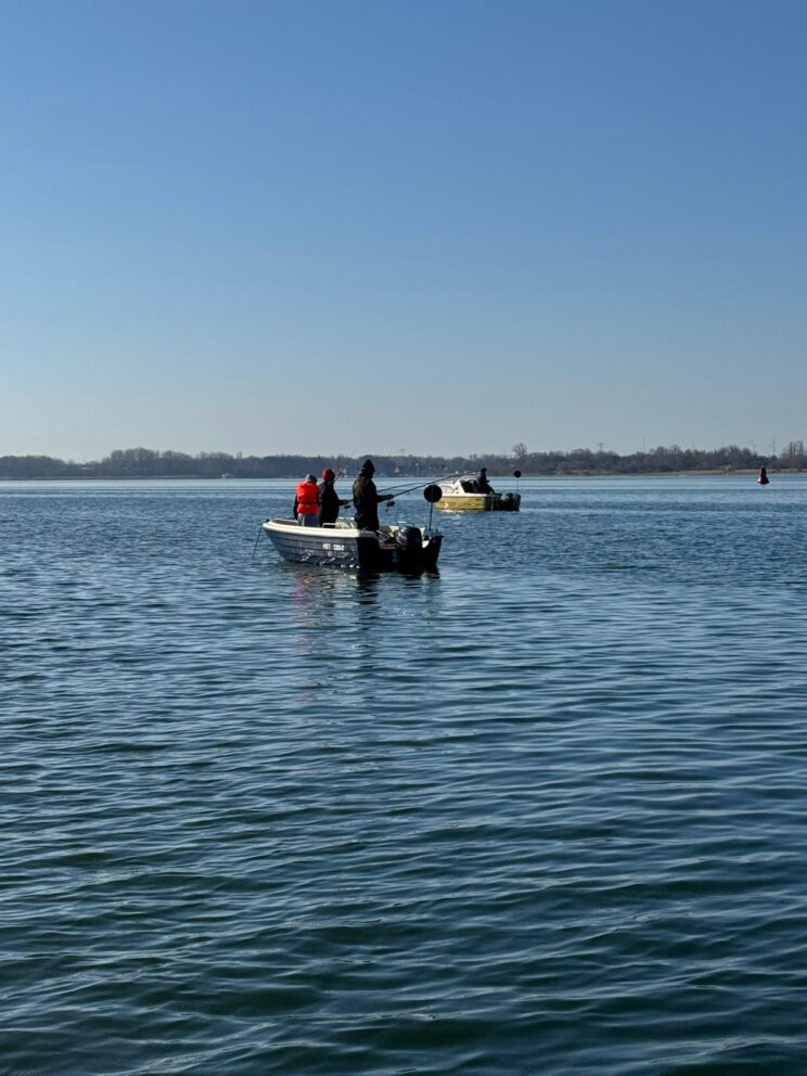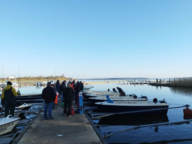 Nach einer kurzen Einweisung und dem Anlegen der Schwimmwesten ging es mit den gemieteten Motorbooten bei besten Angelwetter aufs Wasser und den Heringen an den Kragen.